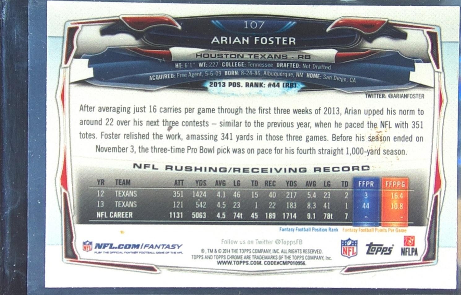 2014 Topps Chrome Arian Foster Refractor #107 Texans