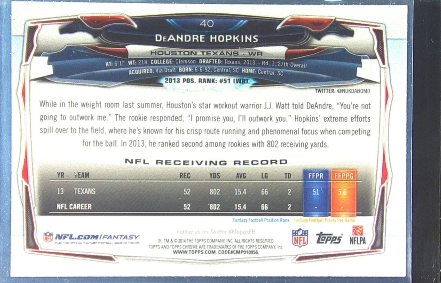 2014 Topps Chrome DeAndre Hopkins Refractor #40 Texans