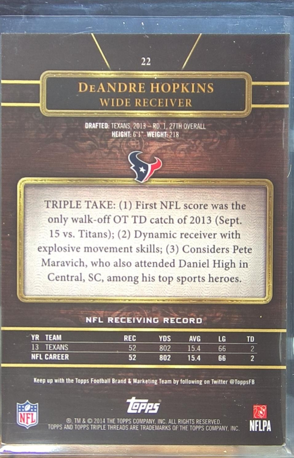 2014 Triple Threads DeAndre Hopkins Purple /399 #22 Texans