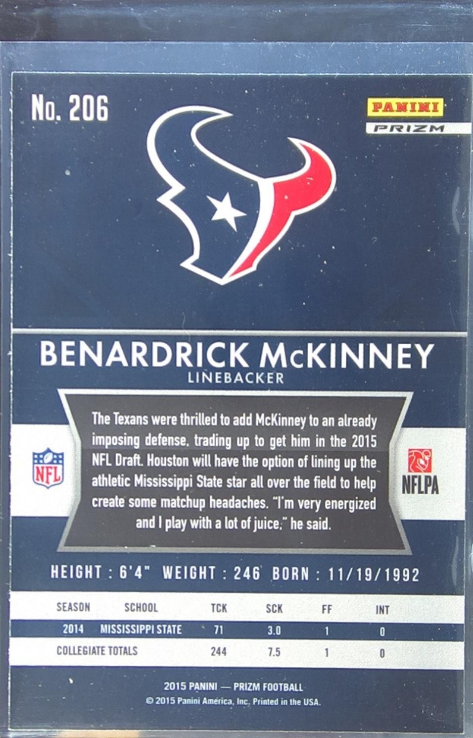 2015 Prizm Benardrick McKinney Blue Prizm RC #206 Texans