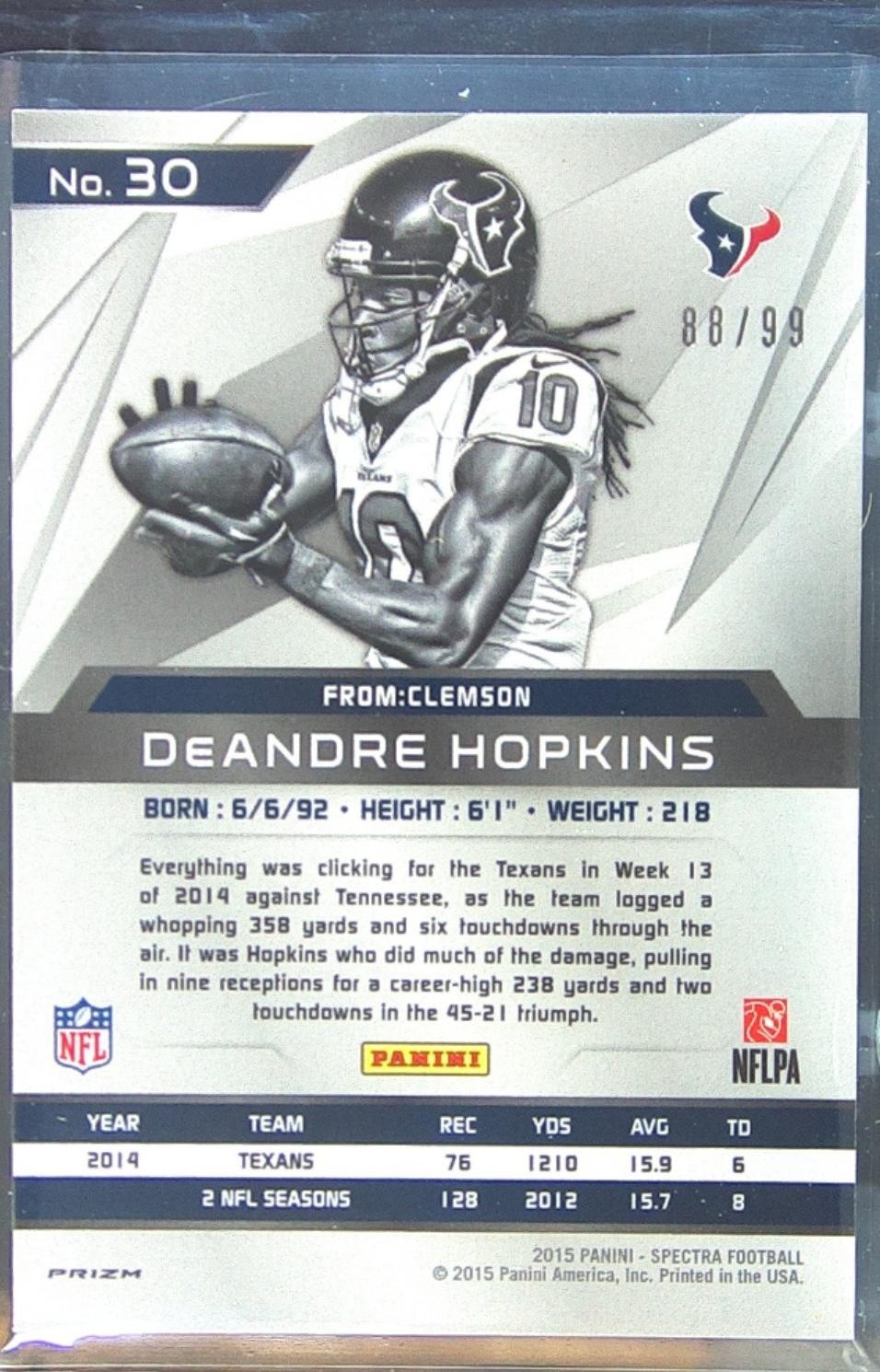 2015 Spectra DeAndre Hopkins /99 #30 Texans