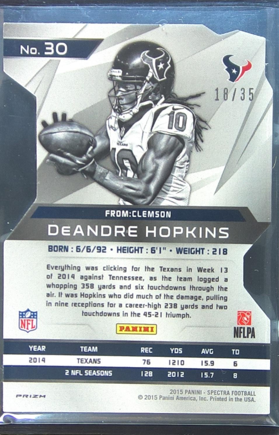 2015 Spectra DeAndre Hopkins Neon Blue Die Cut /35 #30 Texans