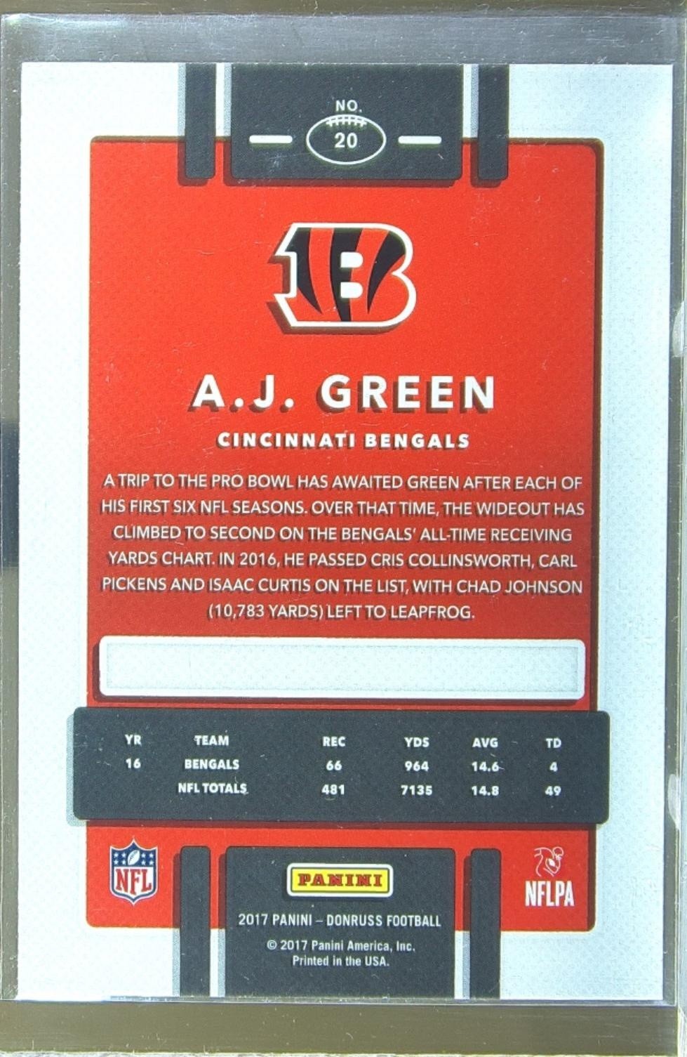2017 Donruss A.J. Green Press Proof Blue #20 Bengals