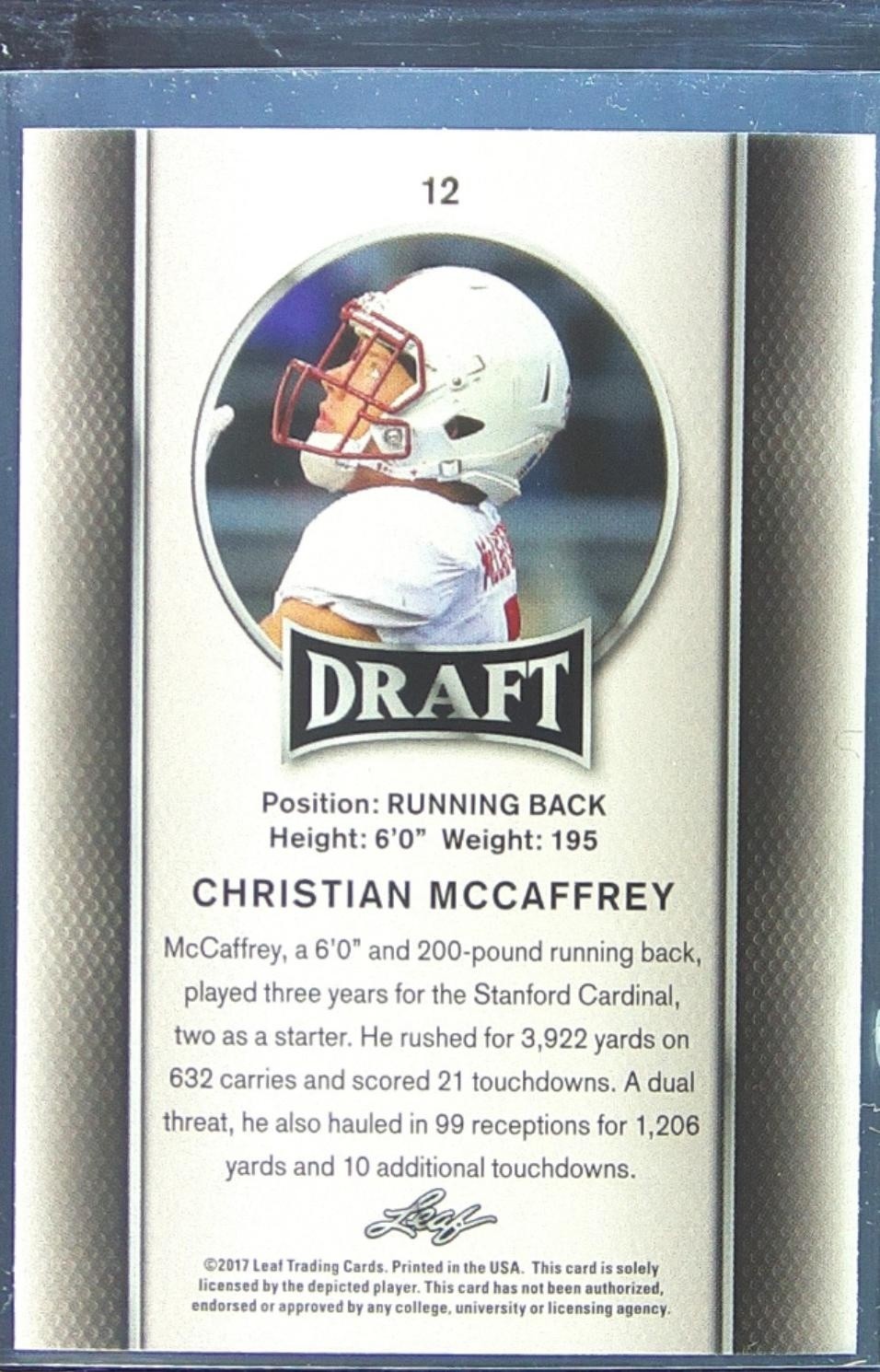 2017 Leaf Draft Christian McCaffrey RC #12 Cardinal