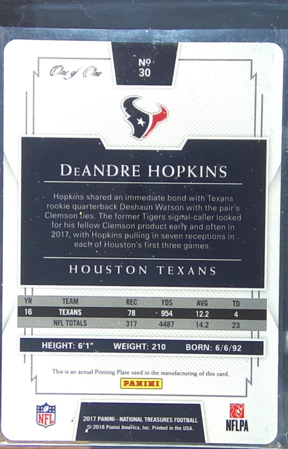 2017 NT DeAndre Hopkins Printing Plate Magenta 1/1 #30 Texans