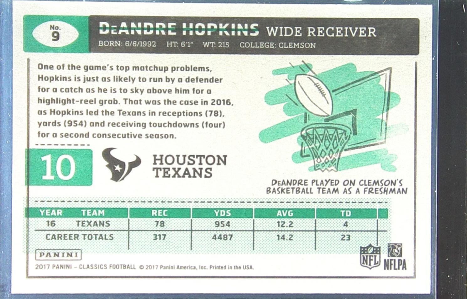 2017 Panini Classics DeAndre Hopkins Timeless Tributes Gold /99 #9 Texans