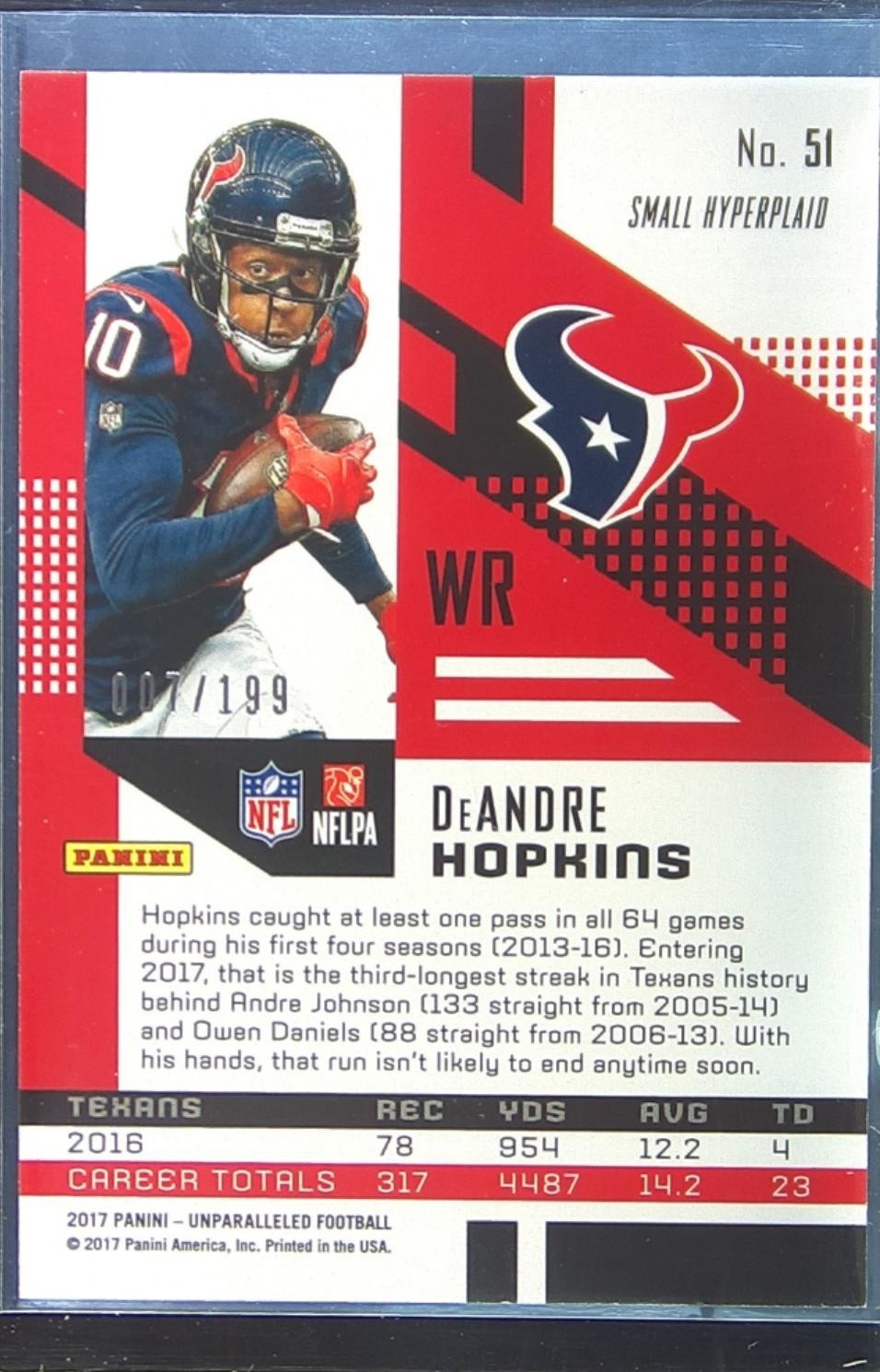 2017 Unparalleled DeAndre Hopkins Yellow /199 #51 Texans