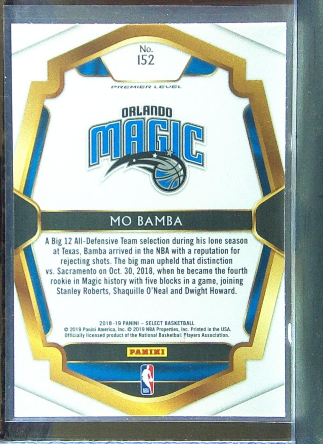 2018-19 Select Mo Bamba RC #152 Magic