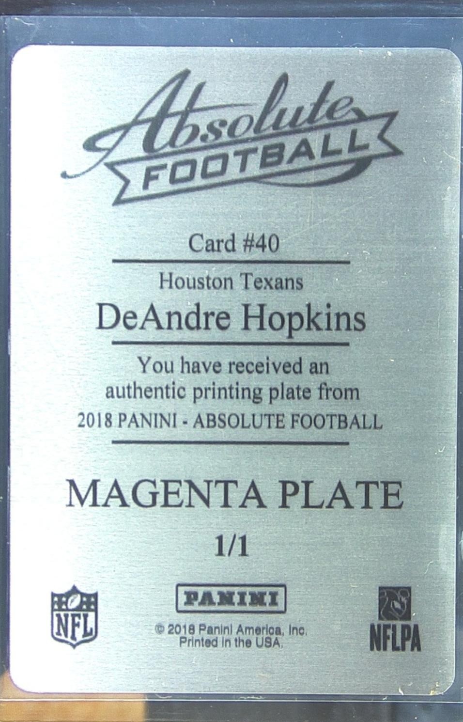 2018 Absolute DeAndre Hopkins Printing Plates Magenta 1/1 #40 Texans