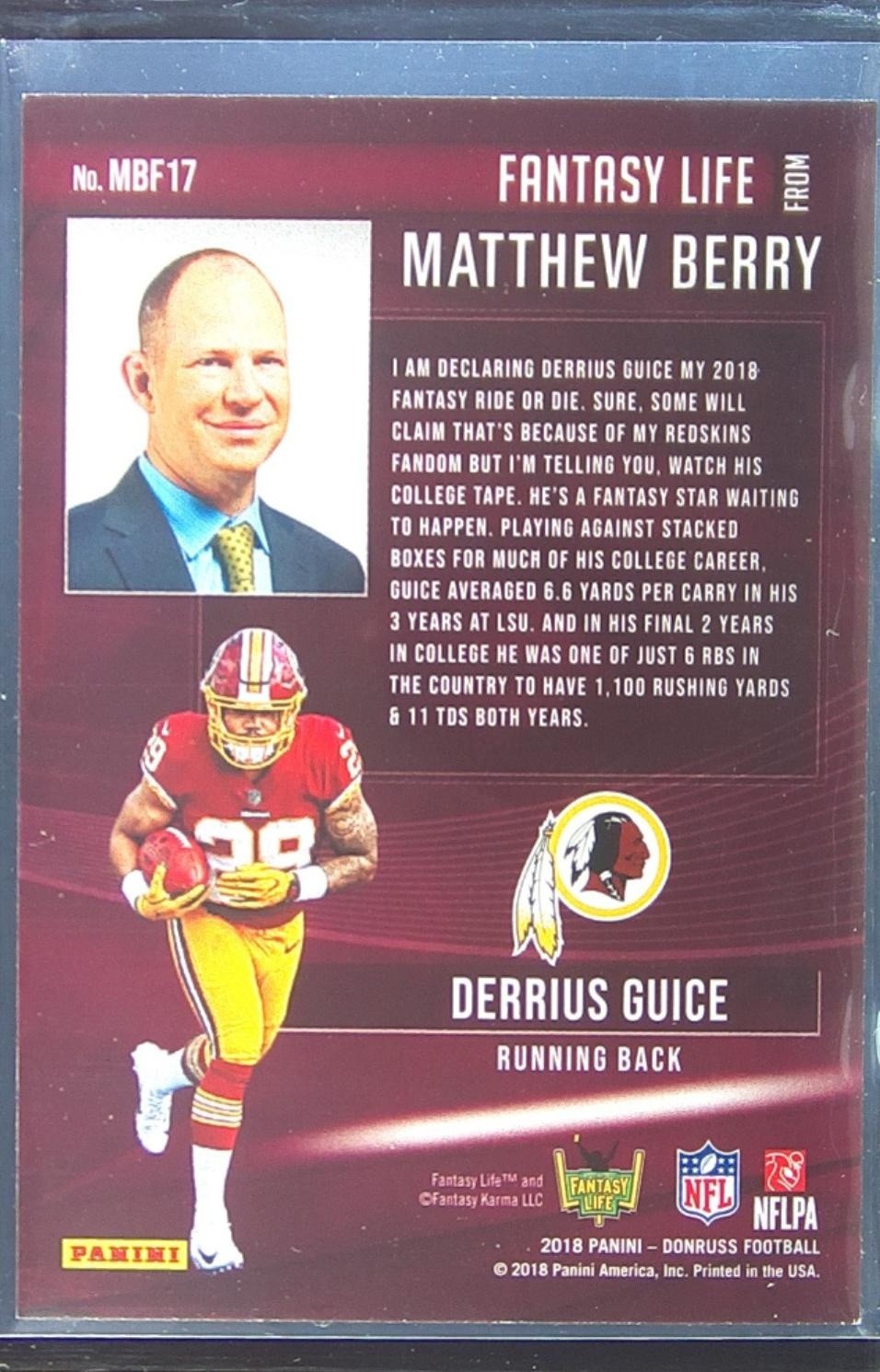 2018 Donruss Derrius Guice #MBF17 Redskins Matthew Berry's Fantasy Life