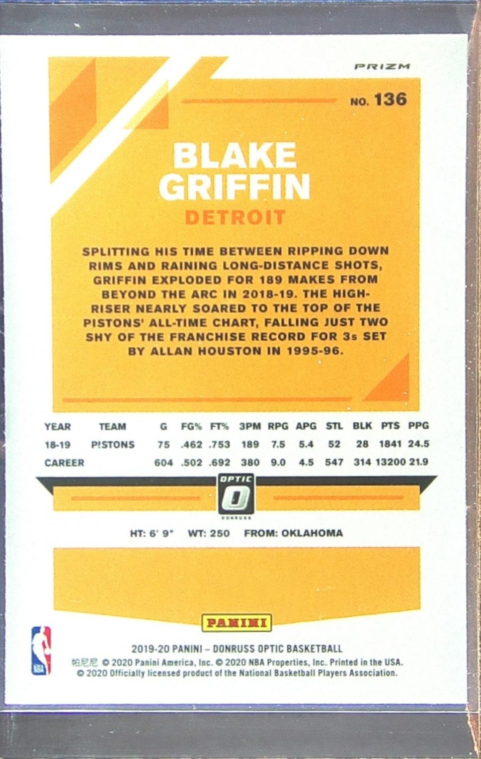2019-20 Donruss Optic Blake Griffin Holo #136 Pistons