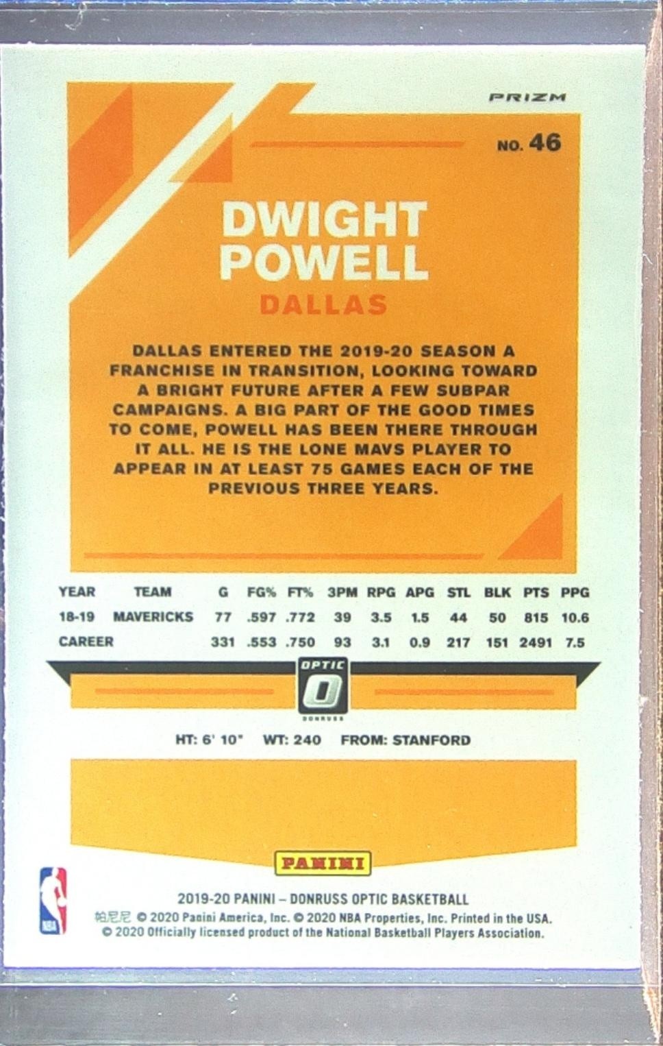 2019-20 Donruss Optic Dwight Powell Blue Velocity #46 Mavericks