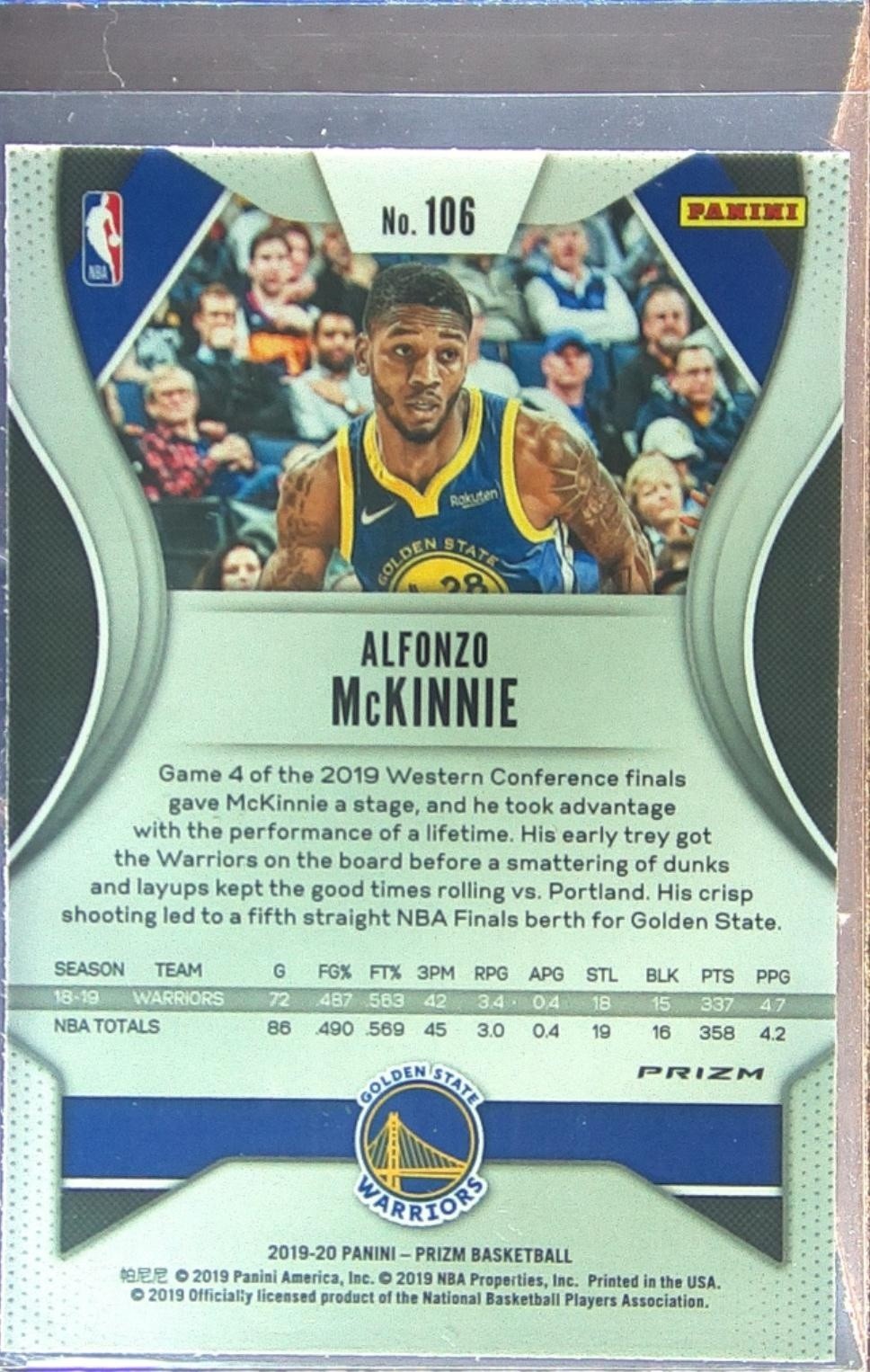 2019-20 Prizm Alfonzo McKinnie Prizms Red White and Blue #106 Warriors