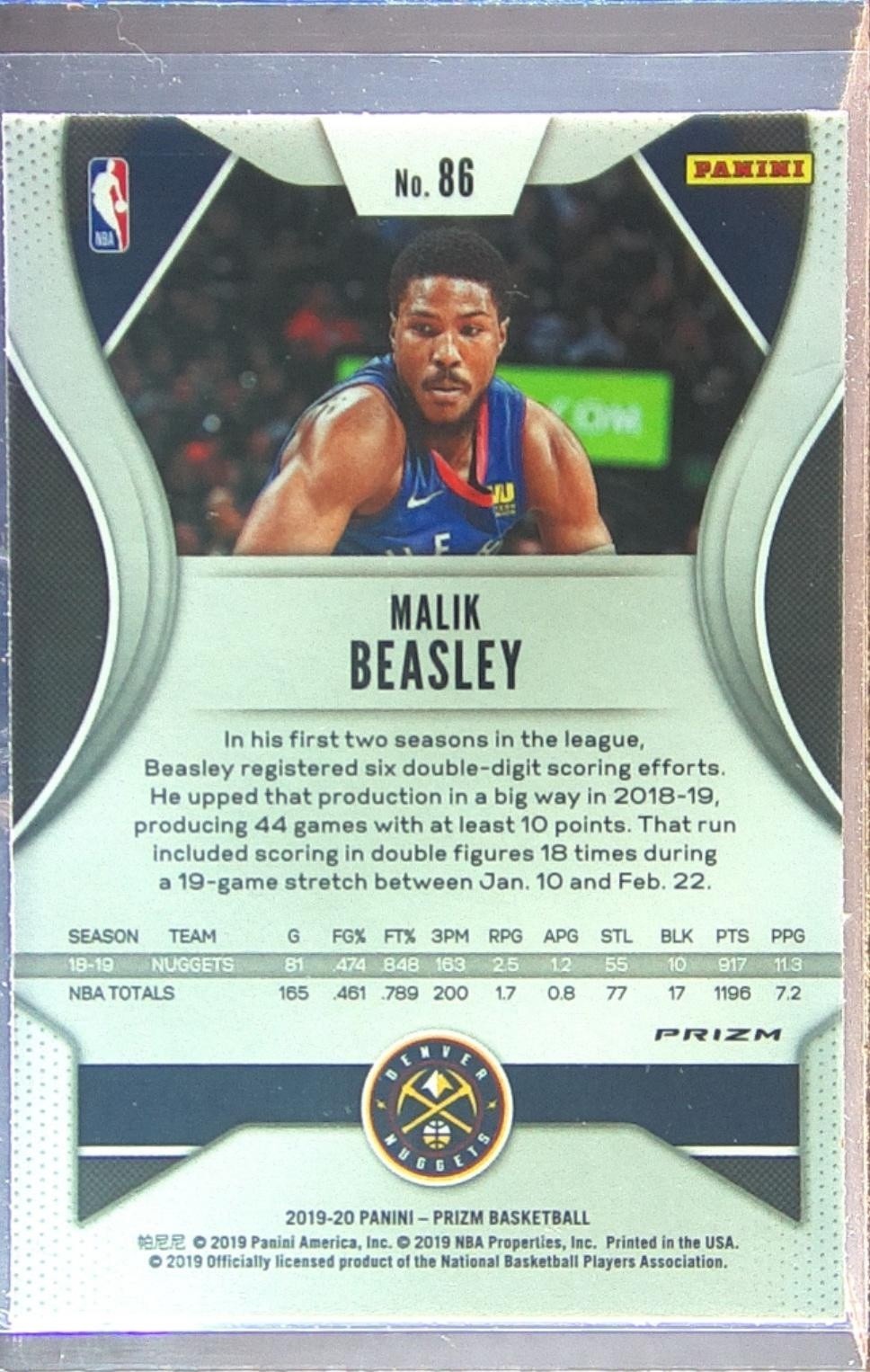 2019-20 Prizm Malik Beasley Prizms Red White and Blue #86 Nuggets