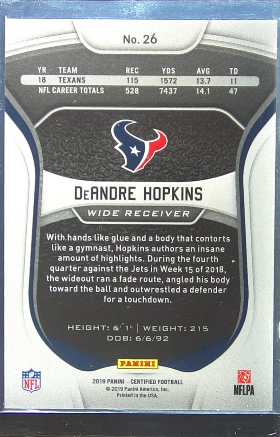 2019 Certified DeAndre Hopkins Mirror /450 #26 Texans