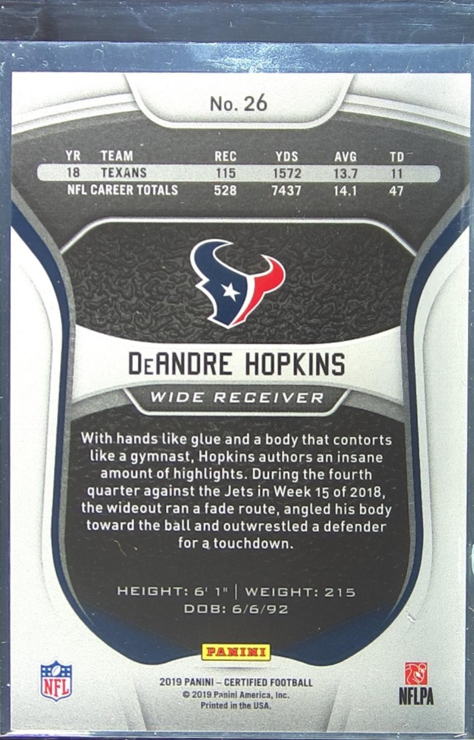 2019 Certified DeAndre Hopkins Mirror Gold /25 #26 Texans