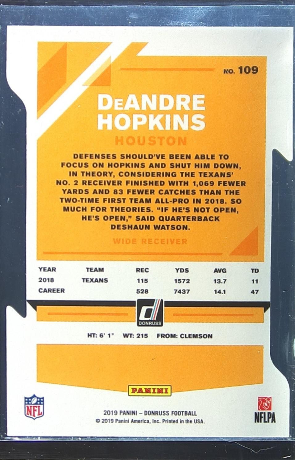 2019 Donruss DeAndre Hopkins Press Proof Gold Die Cut /25 #109 Texans