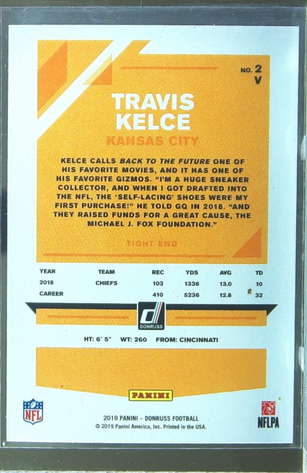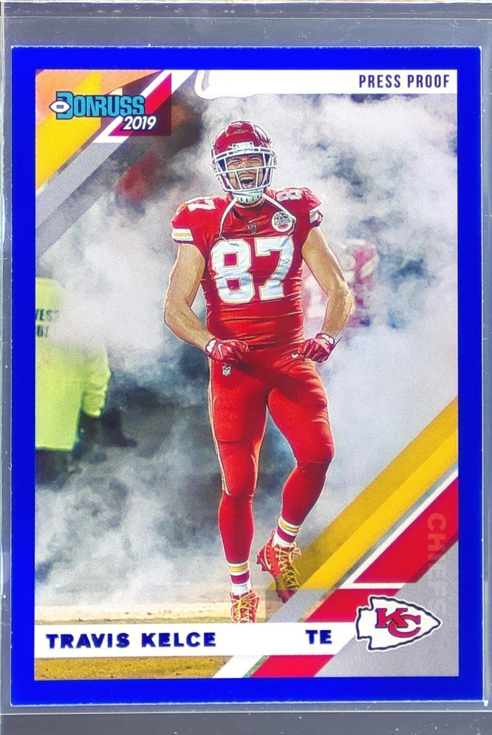 2019 Donruss Travis Kelce Press Proof Blue VAR #2V Chiefs