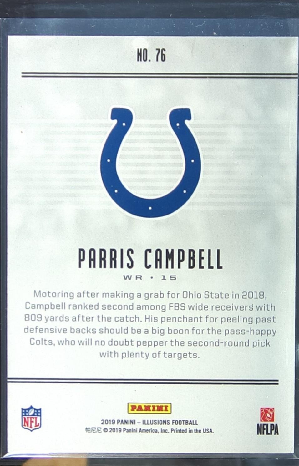 2019 Illusions Parris Campbell Trophy Collection Gold /399 RC #76 Colts