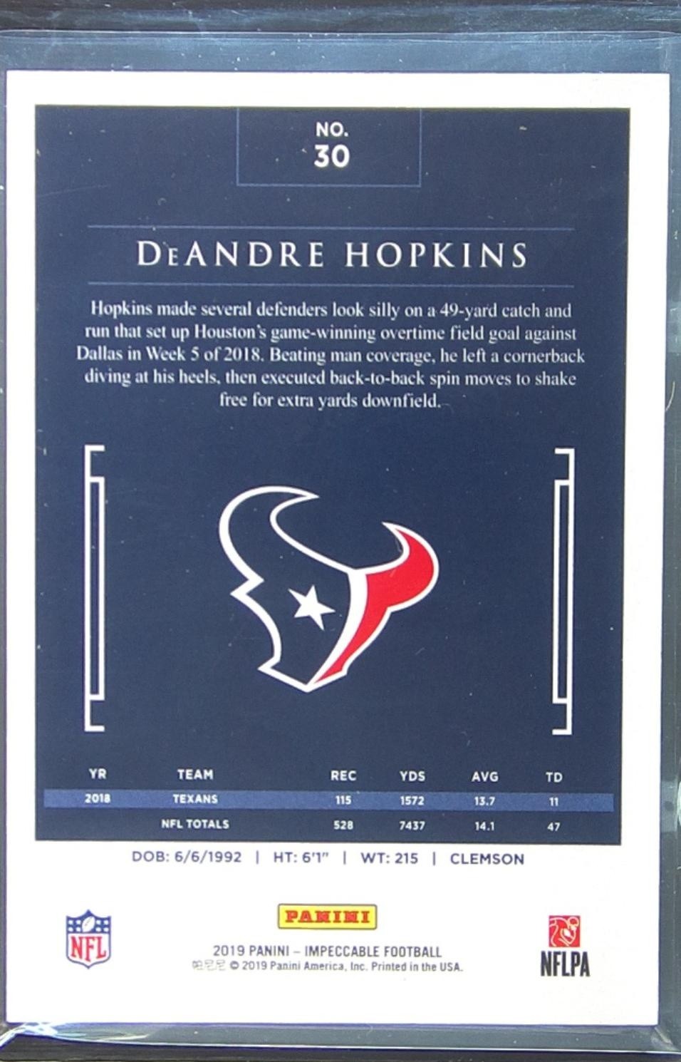 2019 Impeccable DeAndre Hopkins Gold /10 #30 Texans