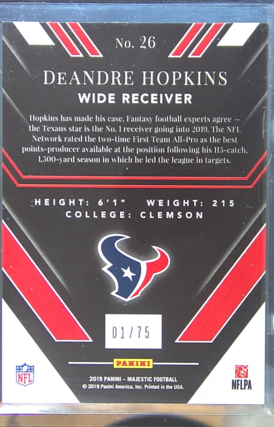 2019 Majestic DeAndre Hopkins /75 #26 Texans