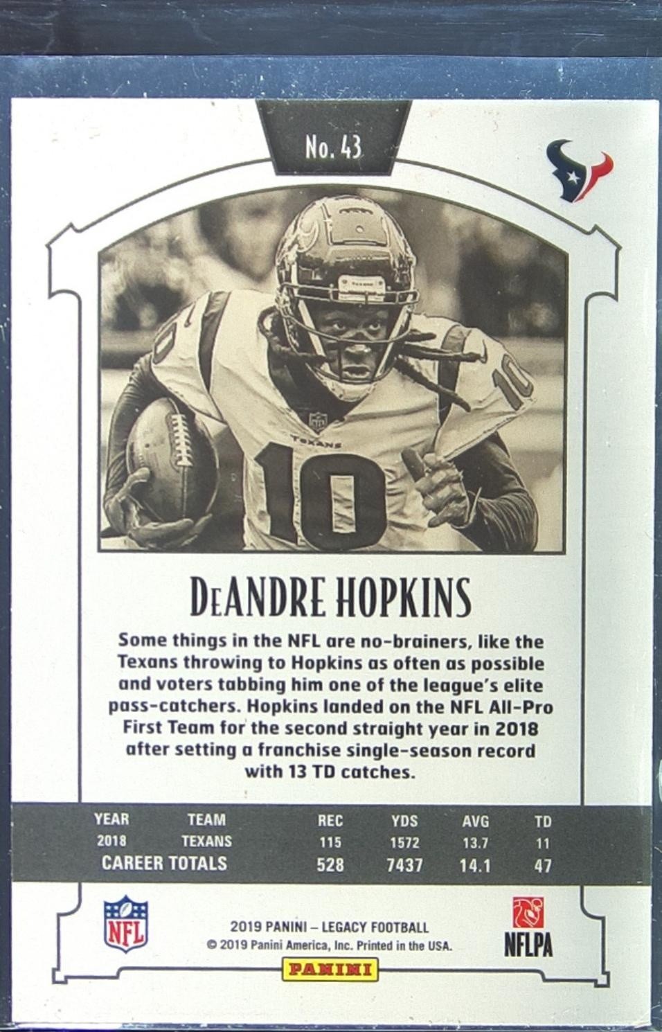 2019 Panini Legacy DeAndre Hopkins Yellow /165 #43 Texans