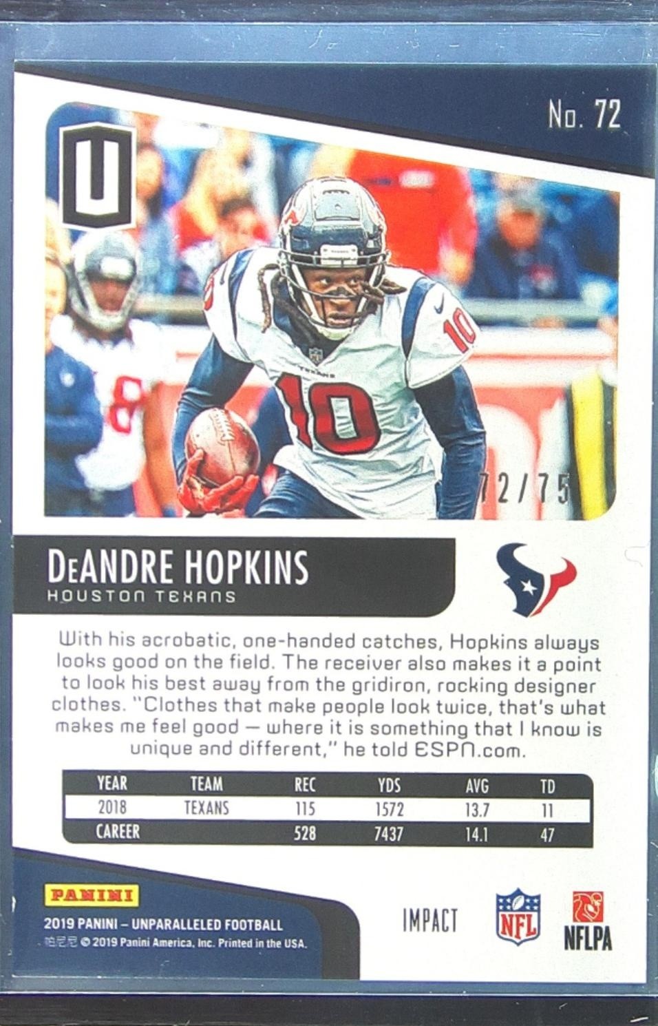2019 Unparalleled DeAndre Hopkins Impact /75 #72 Texans