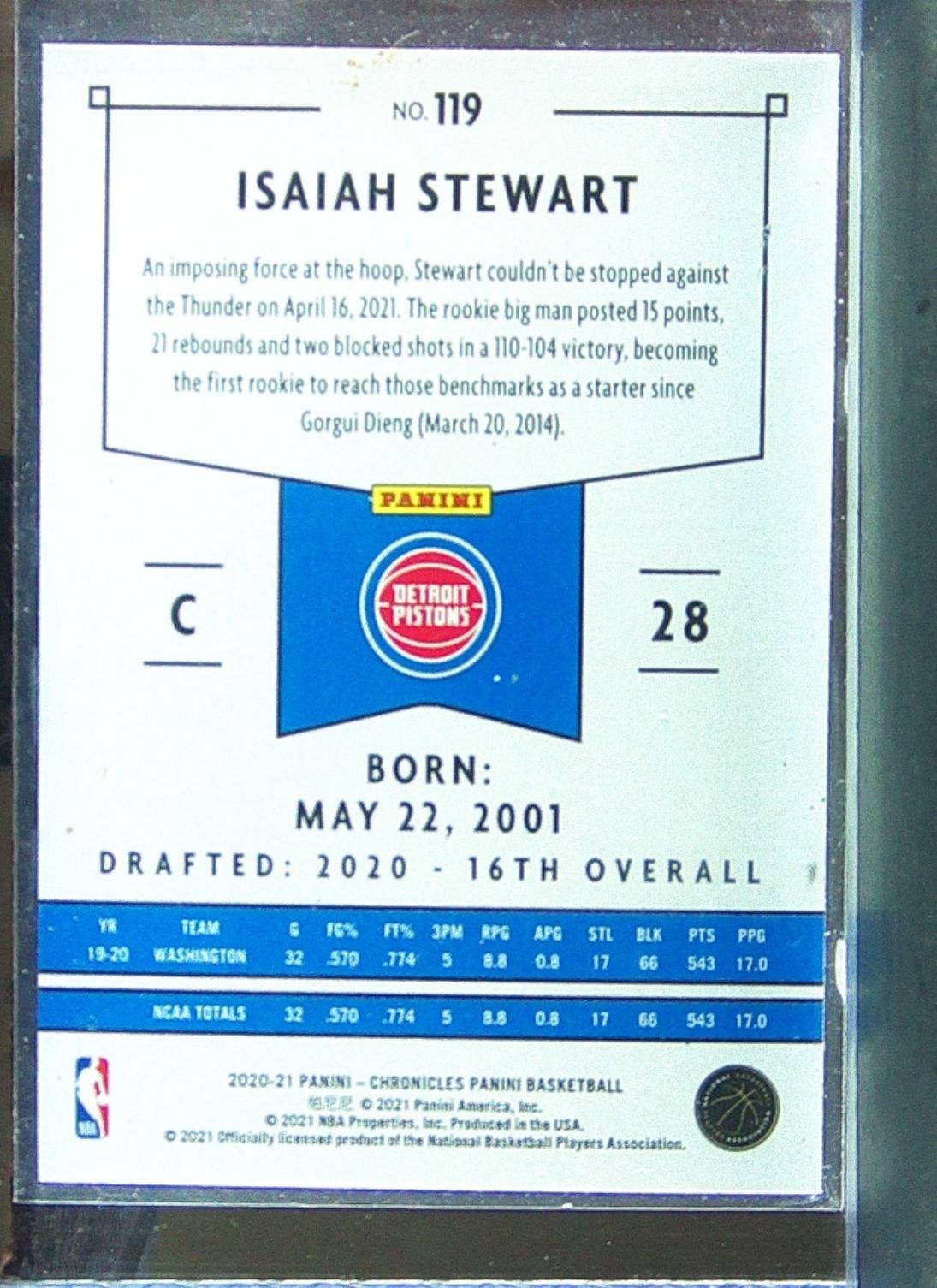 2020-21 Chronicles Isaiah Stewart Green Ice RC #119 Pistons