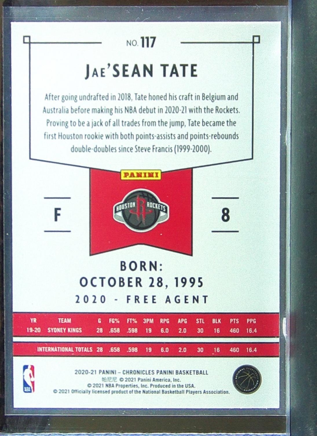 2020-21 Chronicles Jae'Sean Tate RC #117 Rockets