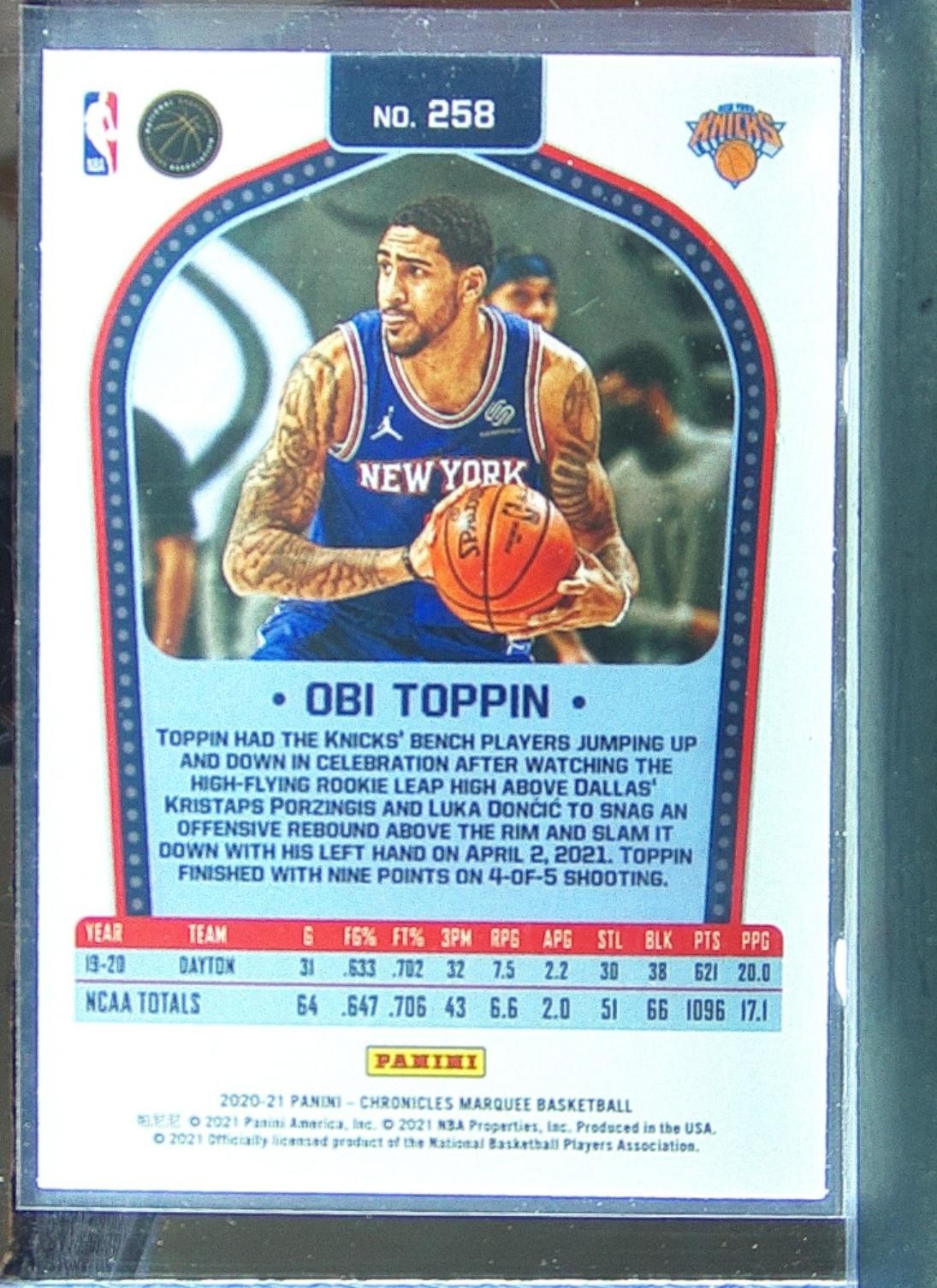 2020-21 Chronicles Obi Toppin Green Ice RC #258 Knicks