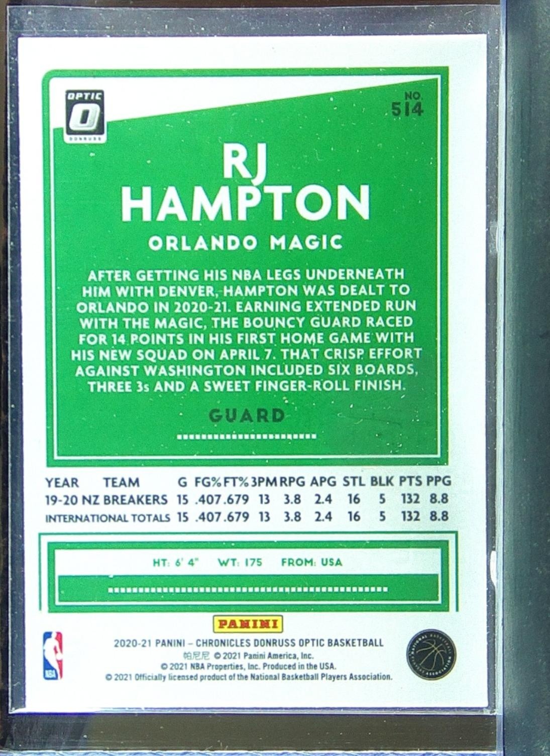2020-21 Chronicles RJ Hampton RC #514 Magic