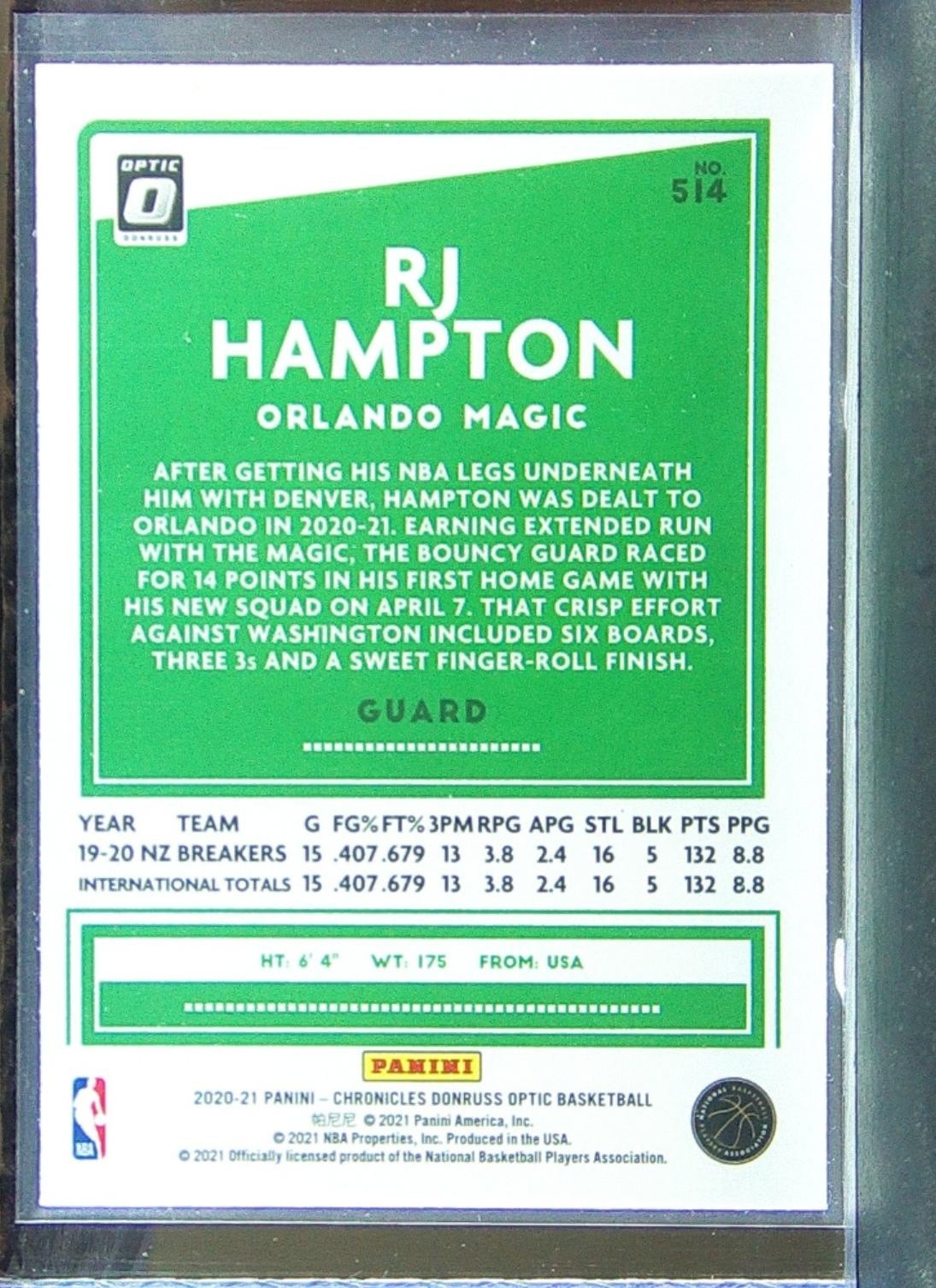 2020-21 Chronicles RJ Hampton RC #514 Magic