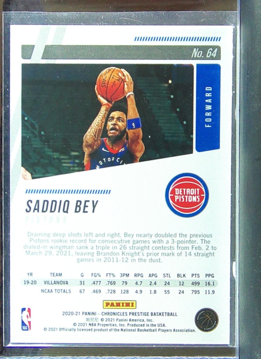 2020-21 Chronicles Saddiq Bey RC #64 Pistons