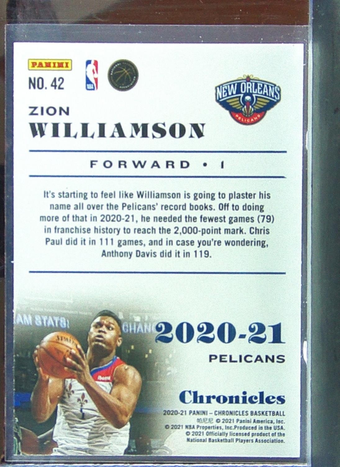 2020-21 Chronicles Zion Williamson Green Ice #42 Pelicans