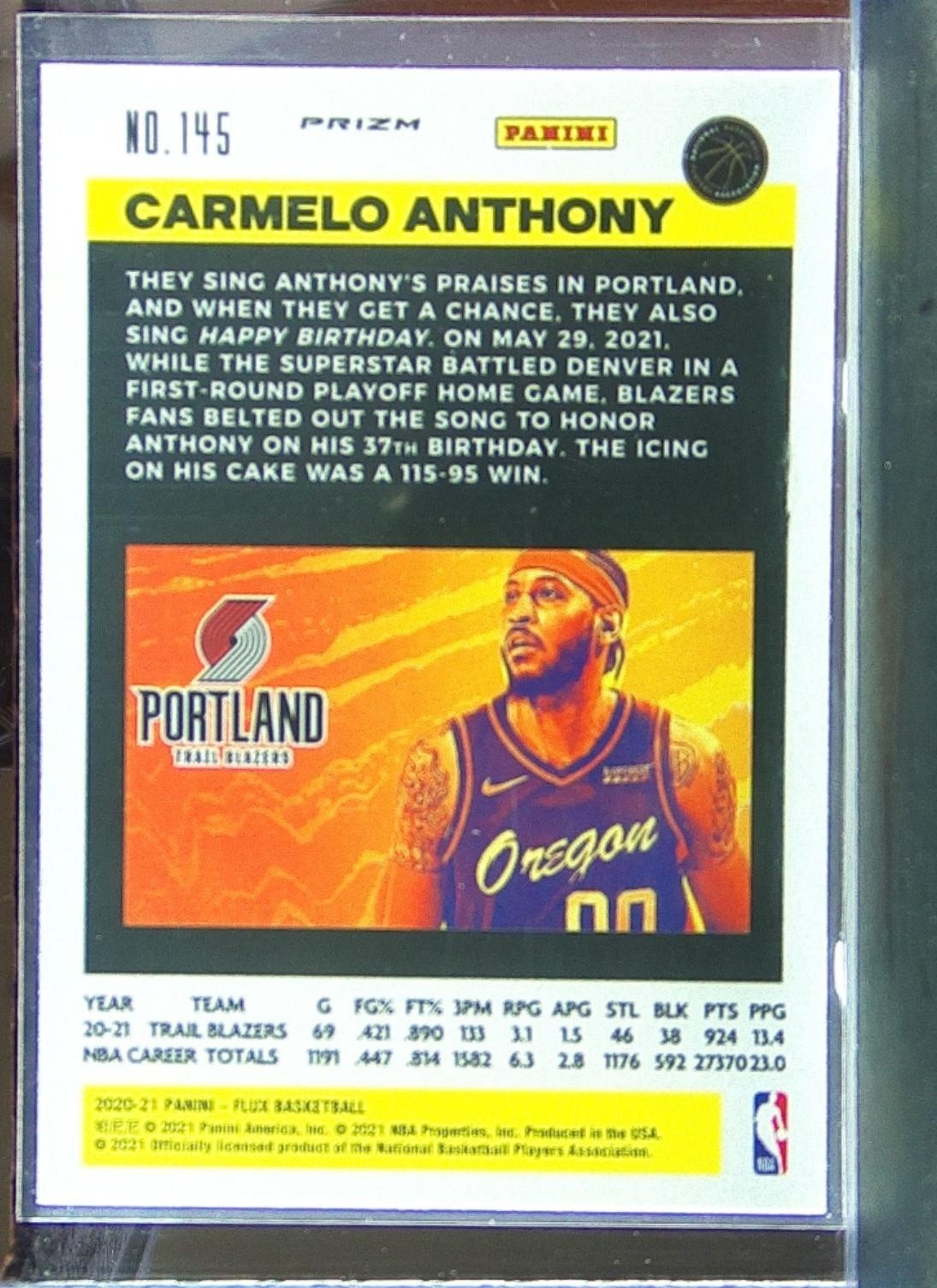 2020-21 Panini Flux Carmelo Anthony Red Cracked Ice #145 Blazers