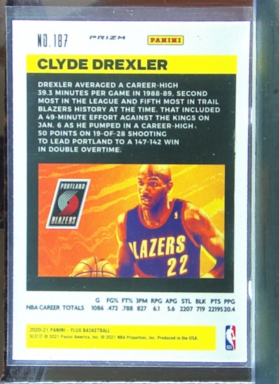 2020-21 Panini Flux Clyde Drexler Red Cracked Ice #187 Blazers