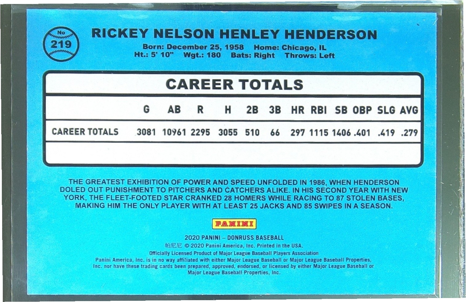 2020 Donruss Rickey Henderson Holo Pink #219 Yankees