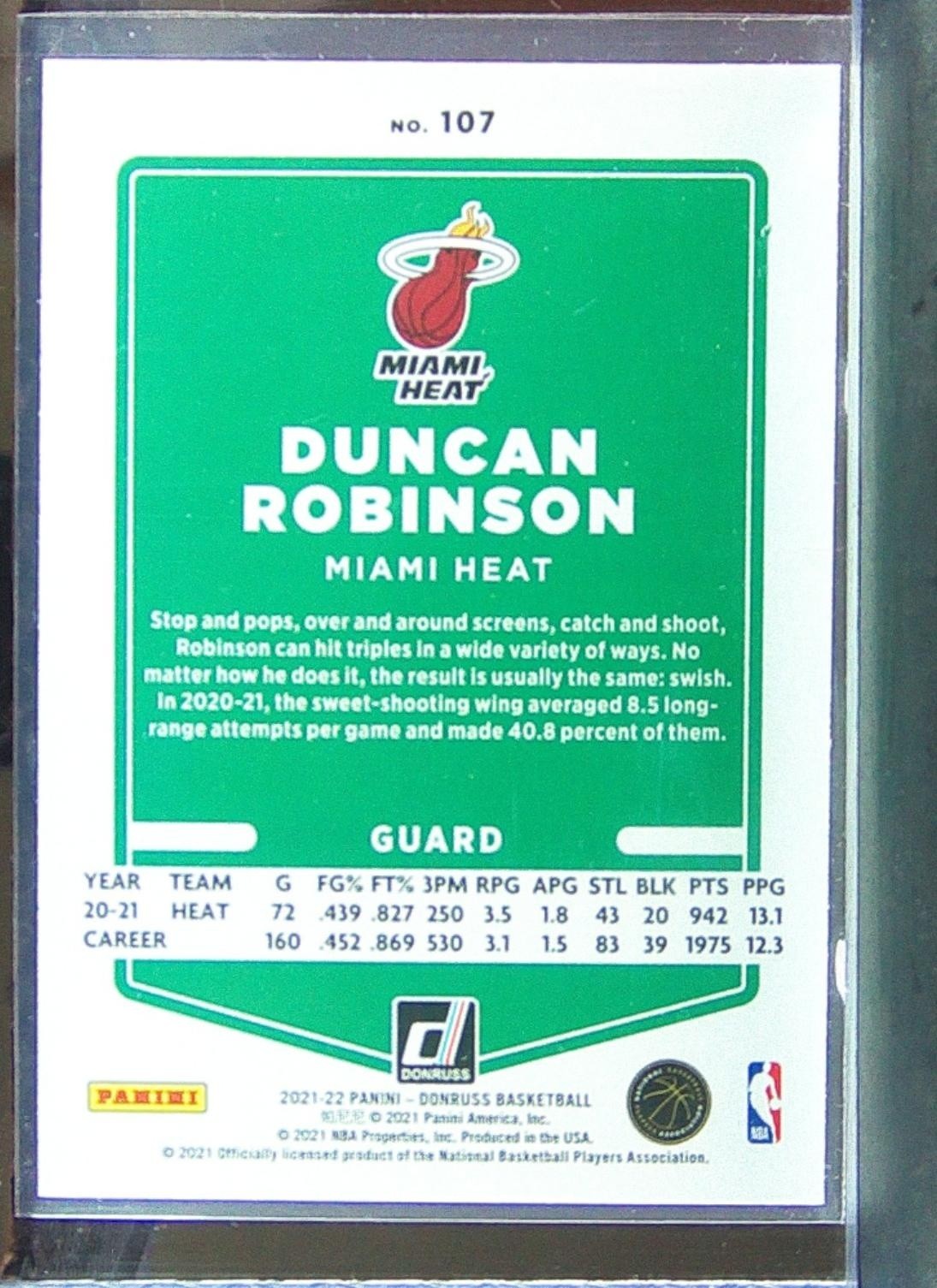 2021-22 Donruss Duncan Robinson Holo Orange Laser #107 Heat