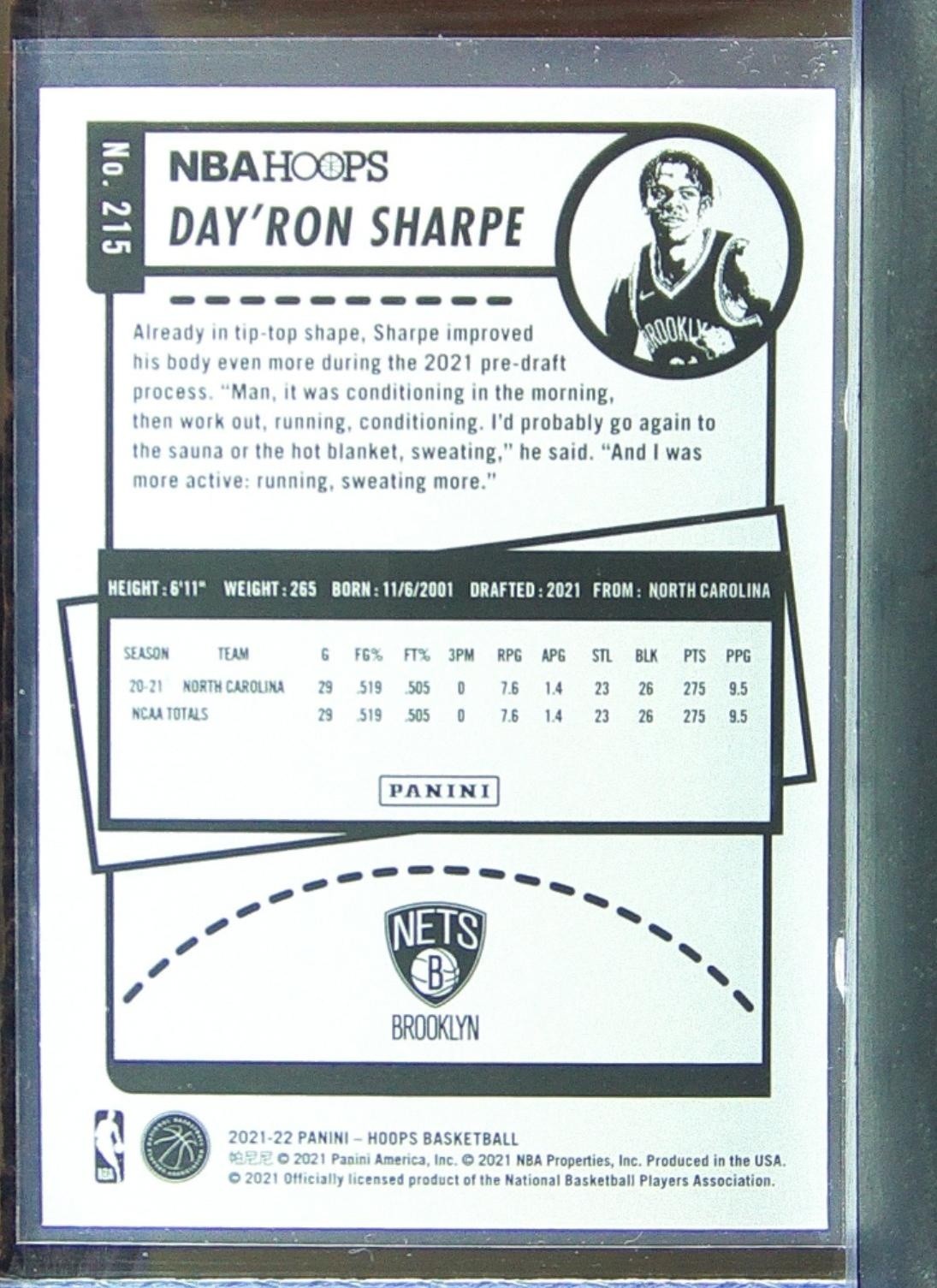 2021-22 Hoops Day'Ron Sharpe RC #215 Nets
