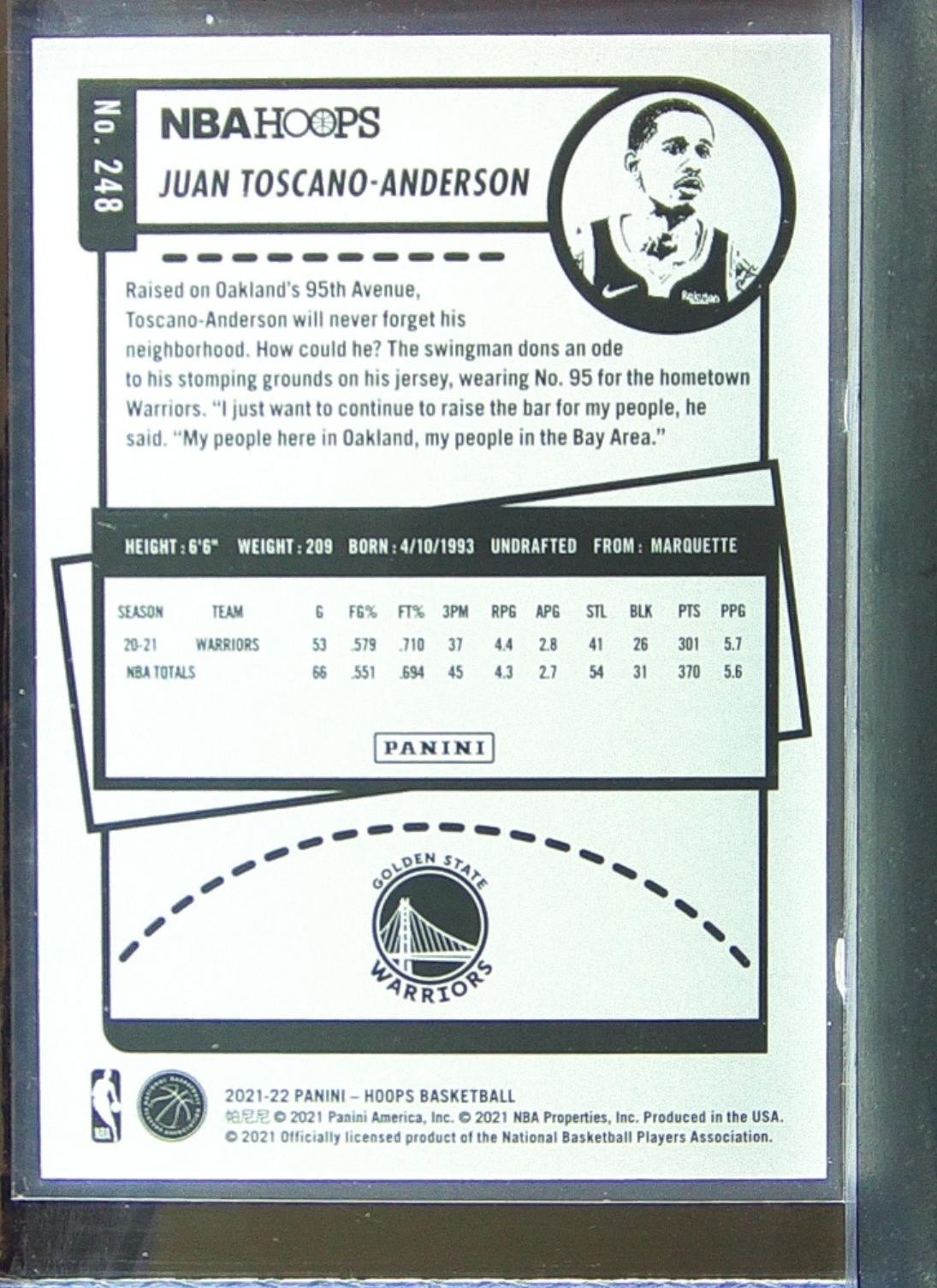 2021-22 Hoops Juan Toscano-Anderson RC #248 Warriors