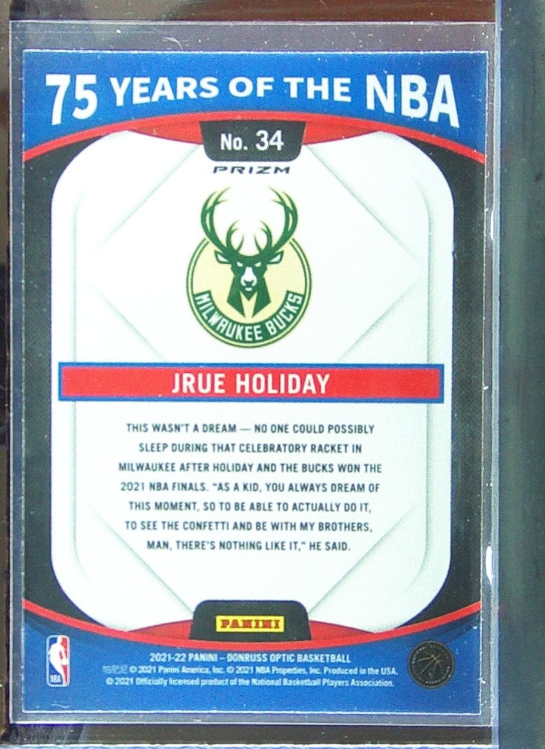2021-22 Prizm Jrue Holiday #34 Bucks 75 Years of the NBA (Donruss Optic)