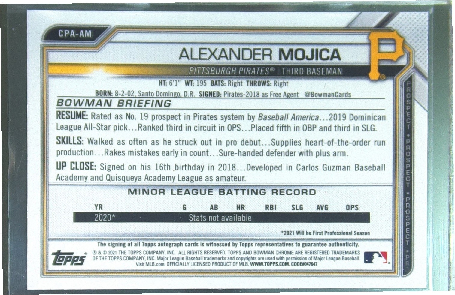 2021 Bowman Chrome Alexander Mojica Auto #CPA-AM Pirates Prospect Autographs