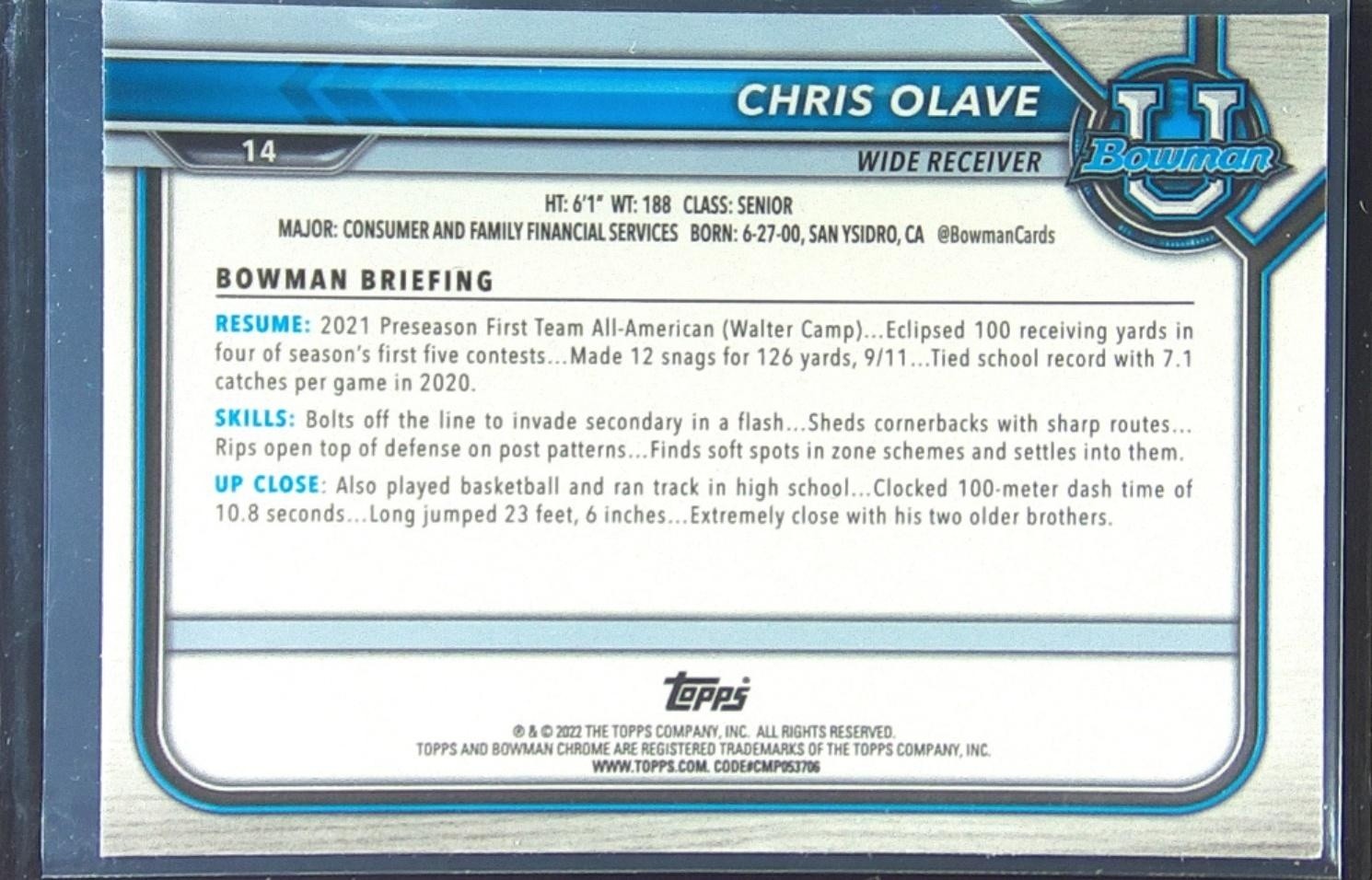 2021 Bowman University Chris Olave Chrome Refractors #14 Buckeyes First