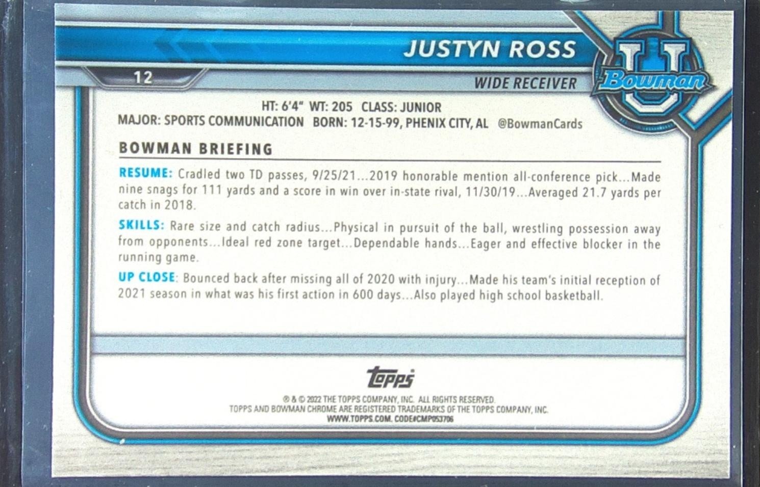2021 Bowman University Justyn Ross Chrome Pink #12 Tigers First