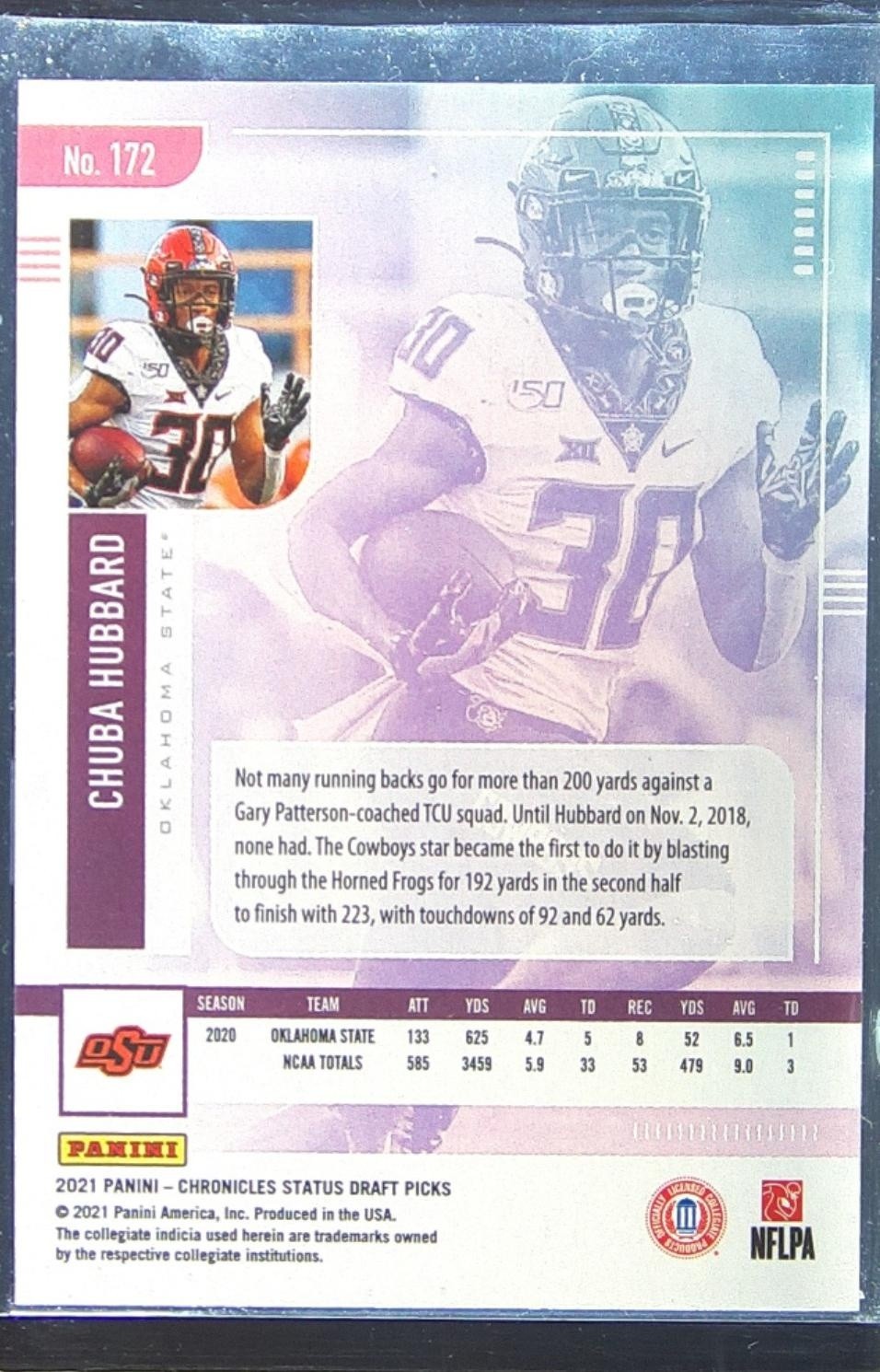 2021 Chronicles Draft Chuba Hubbard RC #172 Cowboys