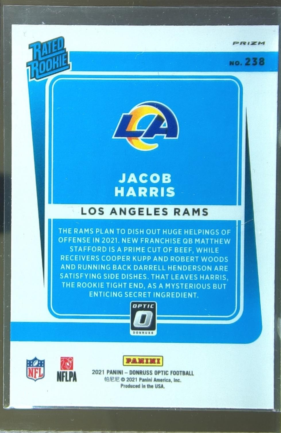 2021 Donruss Optic Jacob Harris Blue Scope RC #238 Rams