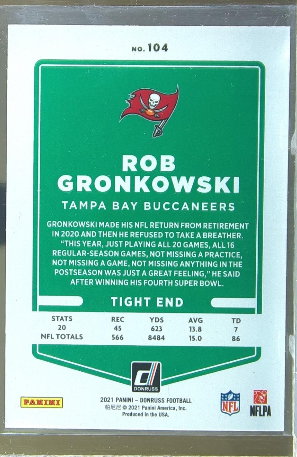 2021 Donruss Rob Gronkowski Press Proof Blue #104 Buccaneers