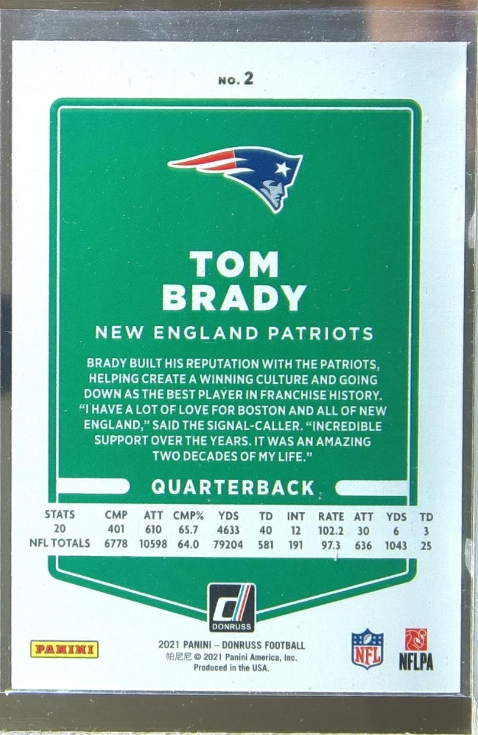 2021 Donruss Tom Brady Press Proof Blue #2 Patriots