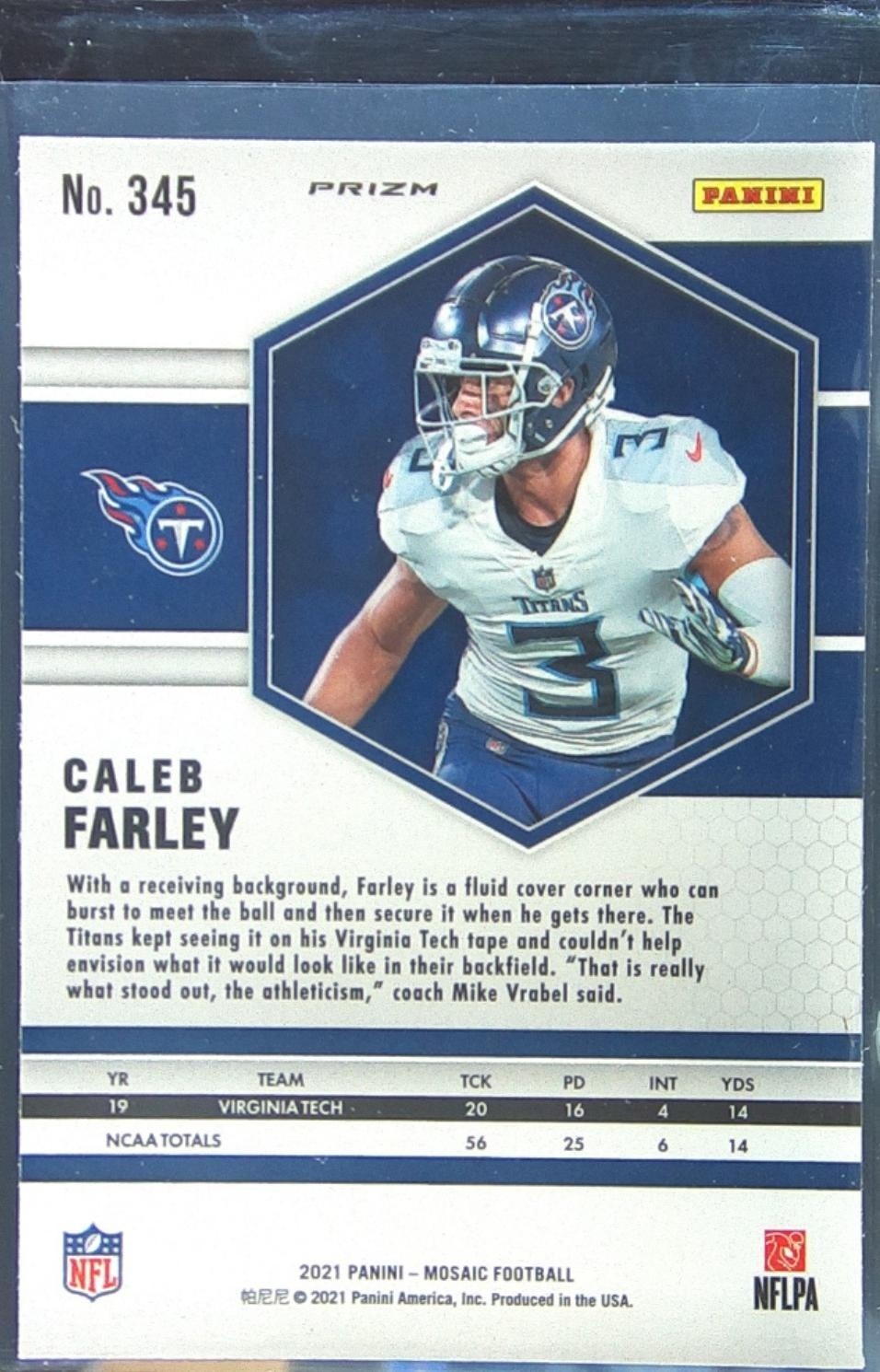 2021 Mosaic Caleb Farley Prizm #345 Titans