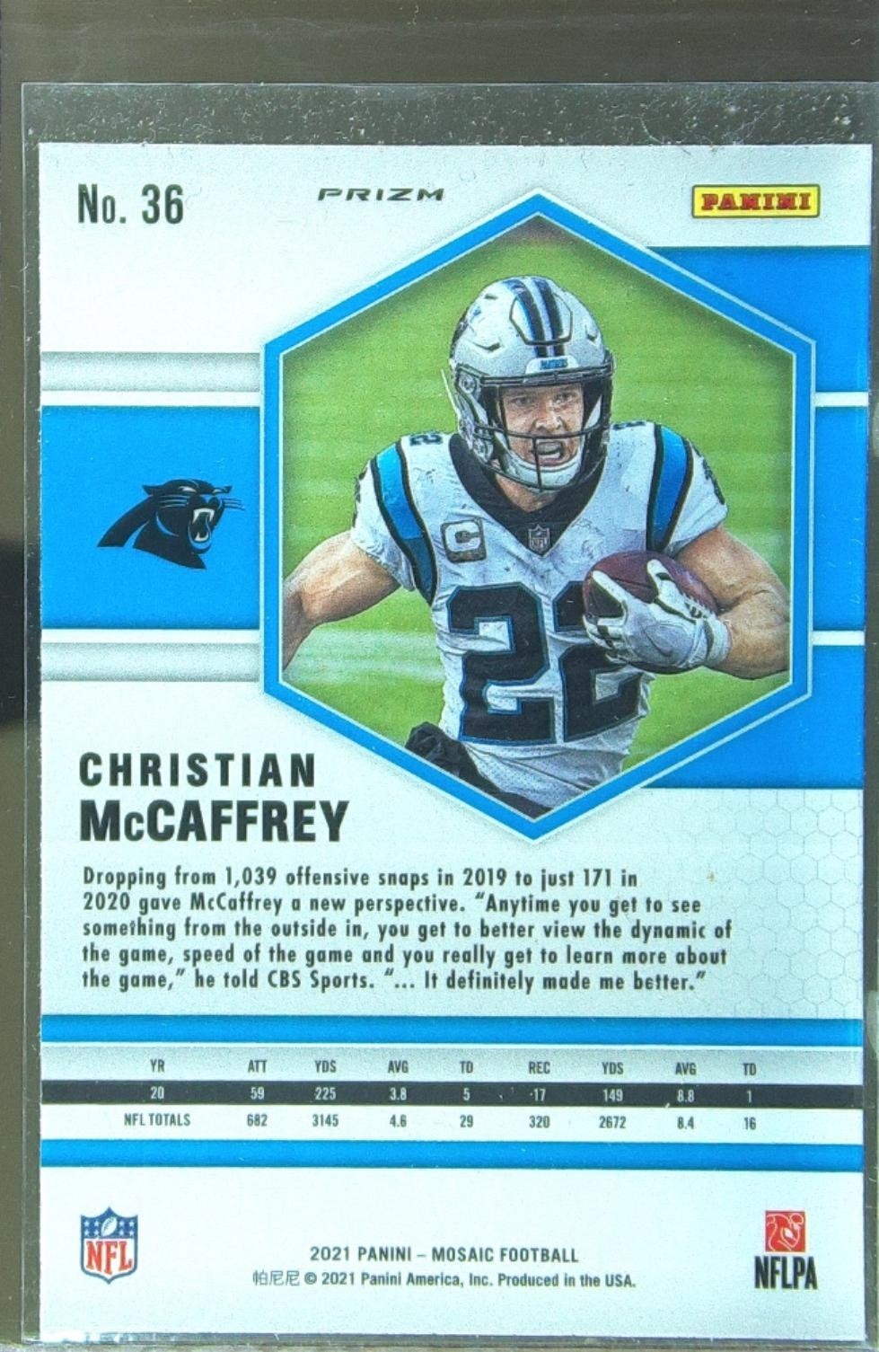2021 Mosaic Christian McCaffrey Prizm Green #36 Panthers